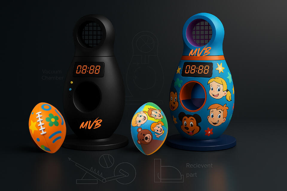 A unique sports toy designed to bring the excitement of American football to young kids. With its vacuum-powered launcher and receiver, MVB throws soft footballs up to 30 meters and catches them from afar, perfect for building skills and confidence.Designed for ages 3-7.